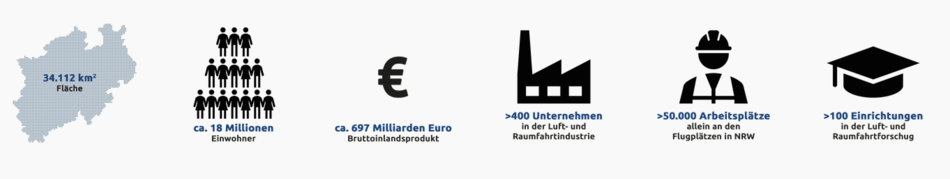 Von den ca. 86.000 Unternehmen in NRW mit einem Umsatz größer als 1 Mio. € im Jahr (Quelle: statista, 2020) arbeiten mittlerweile über 400 Unternehmen in der Luft- und Raumfahrtbranche. Diese werden durch über 100 Einrichtungen in Wissenschaft und Forschung unterstützt.