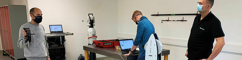 Letzte Woche kam unser langjährige Partner Olaf Wienke von Hexagon Manufacturing Intelligence vorbei, um den Tracker gemeinsam mit den sigma3D Mitarbeitern in Betrieb zu nehmen. Herr Wienke hat zudem noch ein paar seiner Tracker-spezifischen Erfahrungen geteilt, worüber die Mitarbeiter sehr erfreut waren.