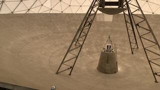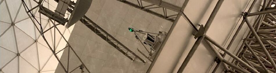 In mehreren Messdurchgängen wurde der 34m große Hauptreflektor sowie der Subreflektor in verschiedenen Neigungen vermessen.