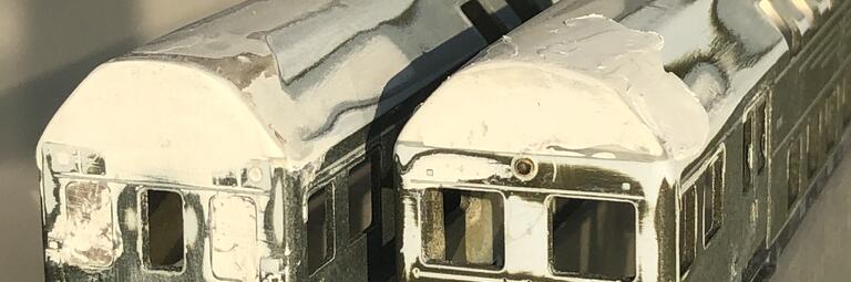 Eine weitere Aufgabe ist die Modellierung der Wagenfront des Bahnmodells aus dem Jahre 1975. Das besondere hierbei ist, dass es dieses Bahnmodell nie als Modellbahn gab. Es soll also aus den vorhandenen älteren Baujahren das Modell so angepasst werden, dass es abgeändert wieder auf eine alte Modellbaureihe eingeklebt werden kann.